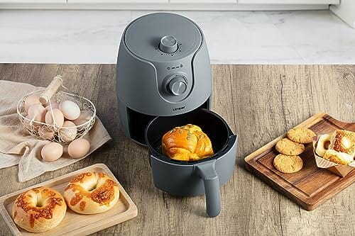 Linsar Heißluftfritteuse 1.8L, Timer, Temperatur wählbar, Warmhalten, Mini, klein, ölfrei, energiesparender & schneller als herkömmliche Öfen, 1200 Watt (Grau)