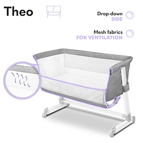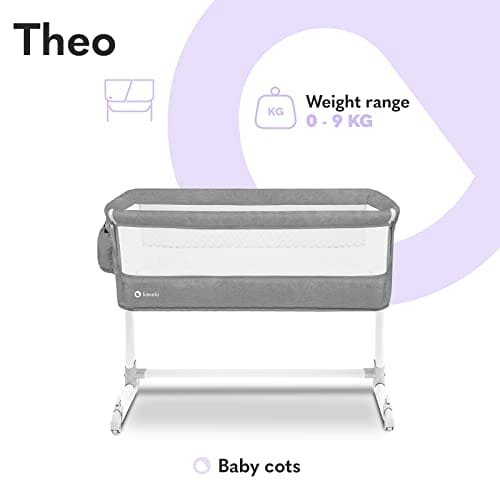 LIONELO Theo 2 w 1 łóżeczko dostawne i turystyczne, regulowana wysokość, moskitiera, wysokiej jakości materac, zwijana ścianka boczna, organizer w zestawie, modny design