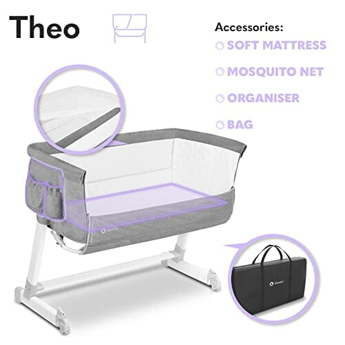 • PRAKTYCZNE AKCESORIA: W zestawie znajdują się następujące akcesoria: moskitiera, torba transportowa i ochronna do podróży, funkcjonalna torba na akcesoria. Theo zostało dodatkowo wyposażone w podwójną kieszeń na zabawki dziecka