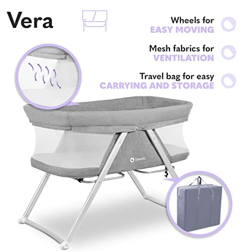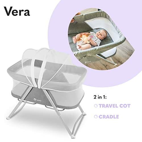 LIONELO Vera łóżeczko turystyczne, funkcja kołyski, wysokiej jakości materac, rozpinana moskitiera, cyrkulacja powietrza, torba transportowa w zestawie, uniwersalny design