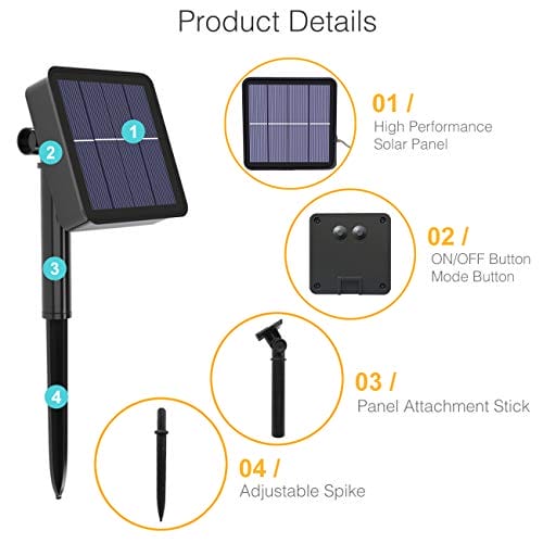 • 【Energooszczędny i przyjazny dla środowiska】 Pomiń wyższe rachunki za prąd. W ciągu dnia wydajny panel słoneczny przekształca światło słoneczne w energię elektryczną zgromadzoną we wbudowanym akumulatorze, a łańcuch świetlny automatycznie zaświeci się w nocy.