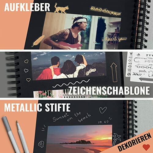 Czarny Album Fotograficzny DIY Lobome A4 | 90 Czarnych Stron do Samodzielnego Zaprojektowania z Akcesoriami do Scrapbookingu, Szablonami, Naklejkami i Długopisami | Pamięci z Dostosowywaną Okładką