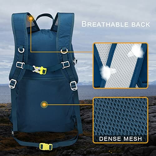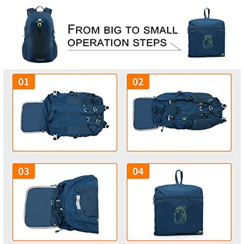 • Składany plecak turystyczny – ten plecak można złożyć do torby do przechowywania i ma wymiary po złożeniu 20,5 x 22 x 6,5 cm.