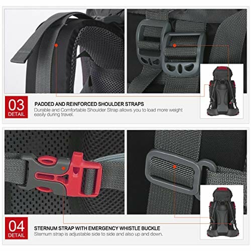 • Minimalne ciśnienie: Dzięki grubszym podkładkom wspierającym talię i gąbkowym podkładkom 3D może skutecznie przenosić ciężar ramion do krocza, dobre do oszczędzania energii i opóźnić zmęczenie mięśni spowodowane długodystansowymi podróżami. Pasy naramienne wykorzystują oddychającą siatkę o strukturze plastra miodu, mogą złagodzić nacisk na ramiona.