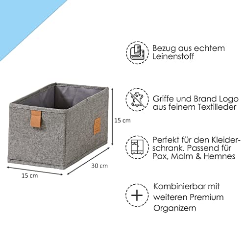 Love IT Store IT 2-częściowy organizer na ubrania z lnu, wzmocniony kartonem, zestaw z dwoma małymi pudełkami, kolor szary, 15 x 30 x 15 cm