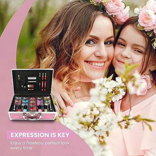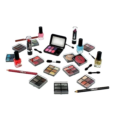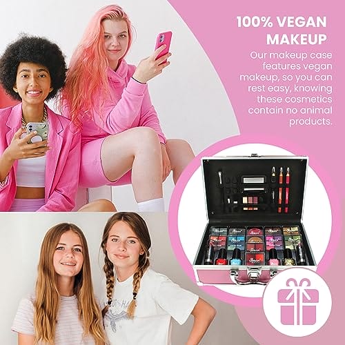 LOVE URBAN BEAUTY Wegański Gorący różowy kosmetyczka do makijażu 82-elementowy zestaw do makijażu dla nastolatków i kobiet z cieniami do powiek różem.
