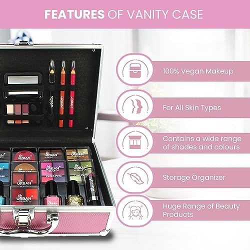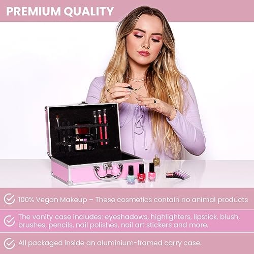 Love Urban Beauty Wegański Gorący różowy kosmetyczka do makijażu 82-elementowy zestaw do makijażu dla nastolatków i kobiet z cieniami do powiek różem