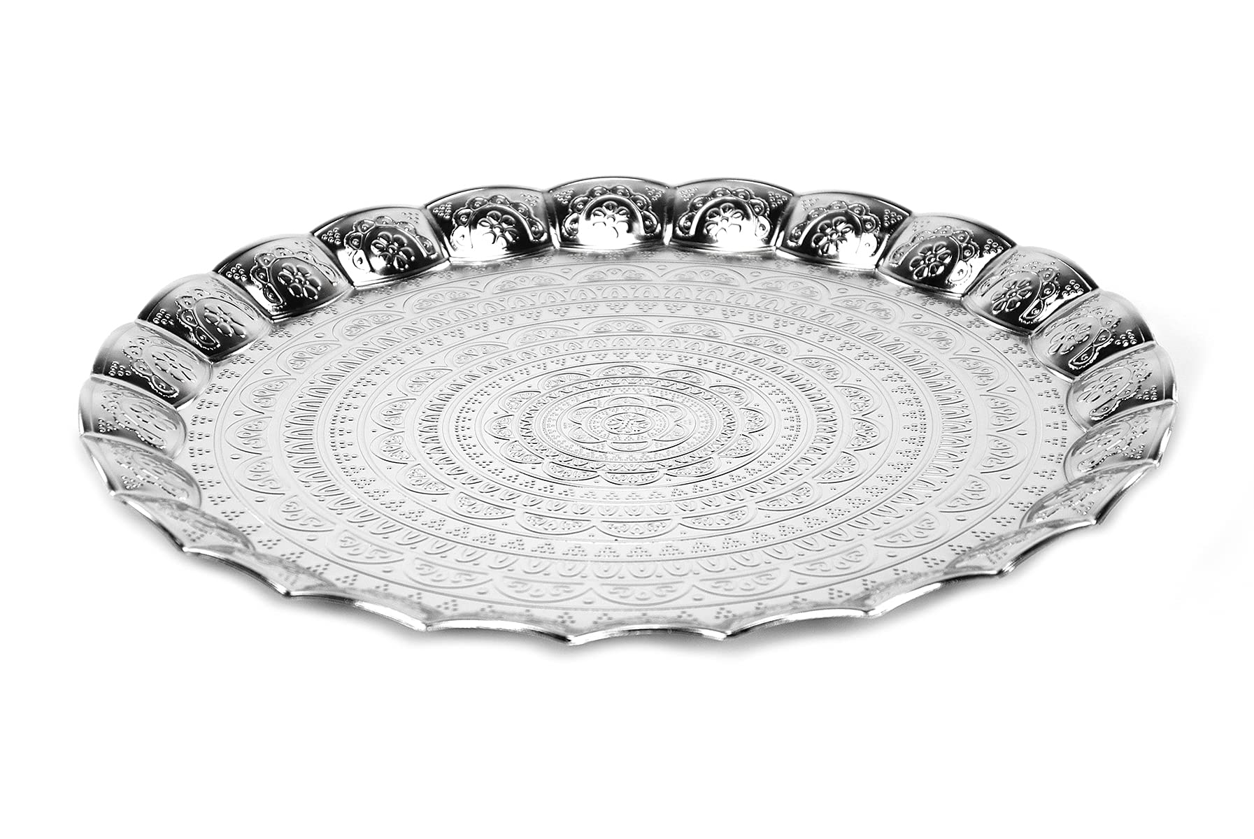 • Okrągła taca do herbaty kolor srebrny dla 6 osób