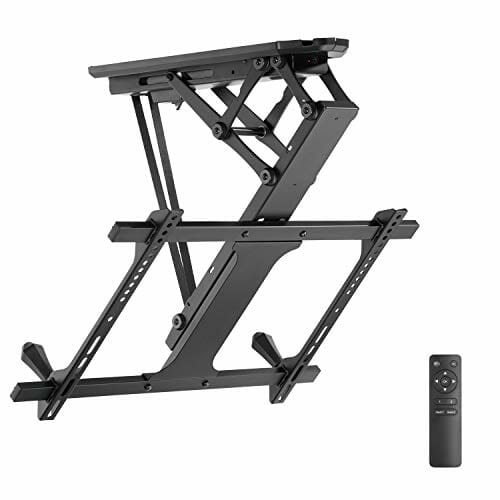 • ✅ Wysokiej jakości elektryczny uchwyt sufitowy z dołączonym pilotem zdalnego sterowania, pozwala na szybką i wygodną regulację nachylenia telewizora bez ruszania się z miejsca.