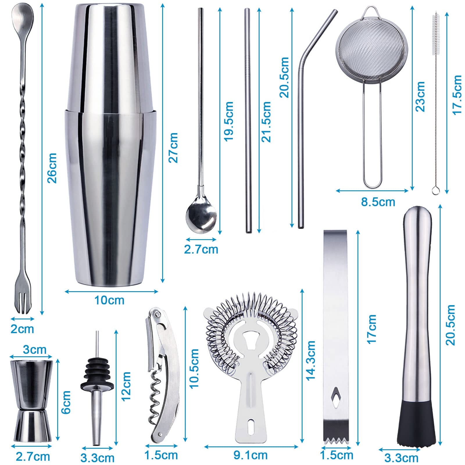Zestaw do koktajli MAISITOO 20-częściowy – idealny prezent, łatwy w obsłudze, nadający się na różne okazje