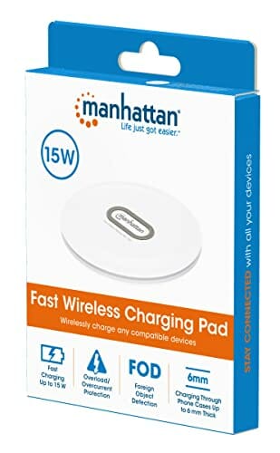 Manhattan bezprzewodowa ładowarka indukcyjna z funkcją szybkiego ładowania, moc wyjściowa 15 W/10 W/7,5 W/5 W, biała