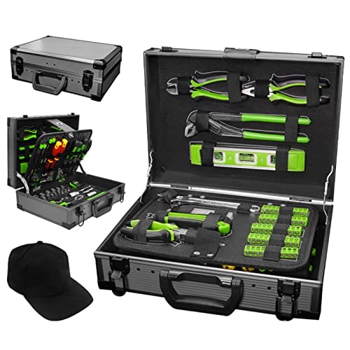 - 【114 Werkzeuge】Der Werkzeugkasten enthält Zangen, Schraubenschlüssel, Schraubenzieher, Wasserwaagen, Scheren und Hämmer. Die Werkzeuge sind aus Chrom-Vanadium-Stahl und Kohlenstoffstahl für Stärke und Haltbarkeit, die alle von Standard-oder an der Spitze der Industrie in Bezug auf Qualität sind gemacht.