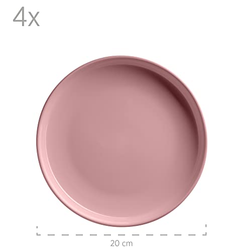 MÄSER 934005 seria Alenia, zestaw naczyń dla 4 osób, w nowoczesnym skandynawskim stylu, 16-częściowy serwis kombi z ceramiki w kolorze różowym, kamionka