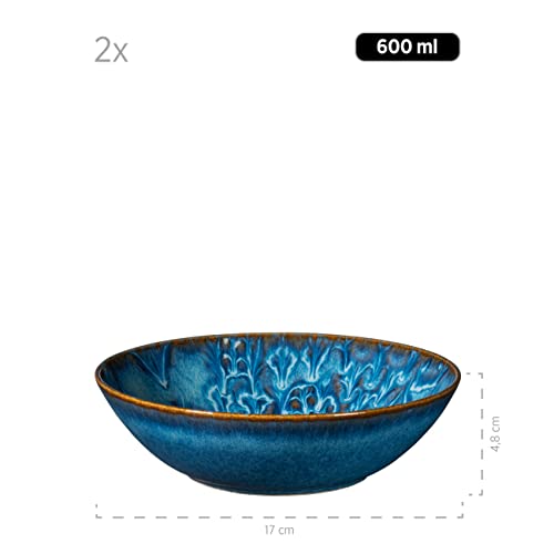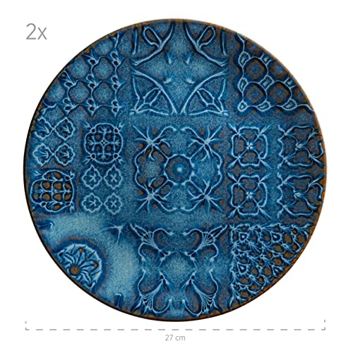 MÄSER 935078 seria Tiles nowoczesny zestaw naczyń w stylu vintage dla 2 osób w stylu mauretańskim, 8-częściowy serwis stołowy z talerzami i miskami z wysokiej jakości ceramiki, kamionki, niebieski