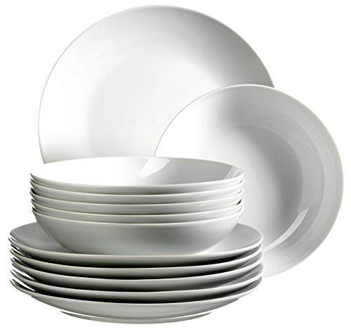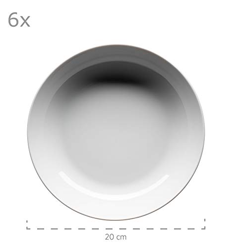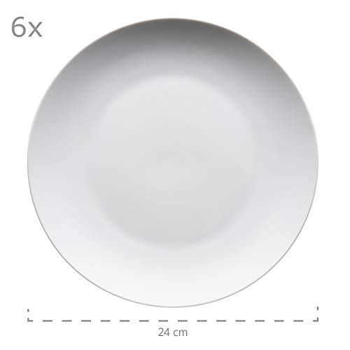 ✅ Ten 12-częściowy zestaw: Ten 12-częściowy zestaw talerzy dla 6 osób z porcelany w kolorze białym składa się z 6 płaskich talerzy obiadowych (Ø 24 cm) i 6 talerzy głębokich (Ø 20 cm)