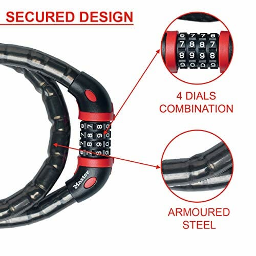 Master Lock 8226EURDPRO Linka Zabezpieczająca do Roweru, na Szyfr, 1 m
