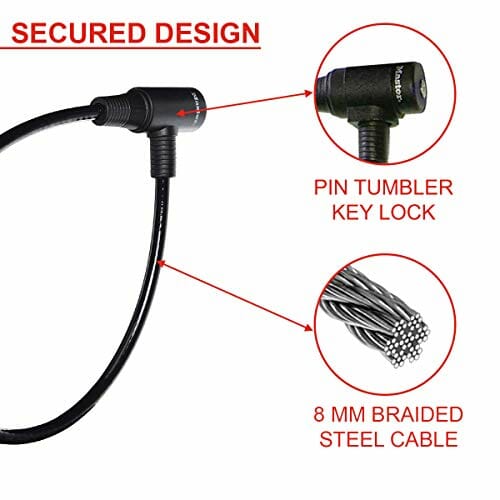 • Bezpieczna konstrukcja: Skręcona stal zapewnia wytrzymałość i elastyczność; zintegrowany mechanizm blokujący z kluczem cylindrowym