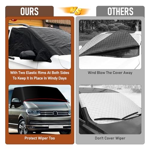 ✅ 【Materiał】: Nasza osłona: 【Materiał】: Nasza osłona przedniej szyby jest wykonana z tkaniny Oxford 600D. Dobrze chroni przednią szybę samochodu przed słońcem, śniegiem, mrozem, kurzem, zadrapaniami, brudem itd. W porównaniu do 420D lub 210D tkanina 600D jest znacznie bardziej stabilna i odporna na pęknięcia lub blaknięcie.