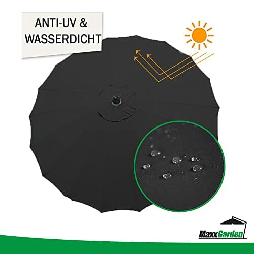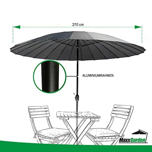 MaxxGarden – Sonnenschirm (Ø270cm) mit Kippsystem – Luxus-Sonnenschirm Balkon mit Kurbel – Wetterfester Gartenschirm aus Hochwertigem Aluminium – Anthrazit