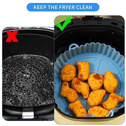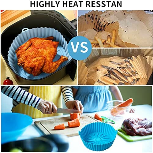 - 【Kochhelfer】 Gut durchdachtes silikonform heißluftfritteuse, Die einzigartige erhabene Textur der Wiederverwendbarer Backpapier für Heißluftfritteuse lässt Öl und Fett bis zum Rand des Topfes ablaufen und verteilt die Hitze gleichmäßiger um die Speisen, was die Luftzirkulation in der Fritteuse fördert, um langes Garen zu vermeiden und den Boden nicht zu verbrennen. wodurch Lebensmittel knuspriger und weniger Öl werden und verkürzt so ihre garzeit.