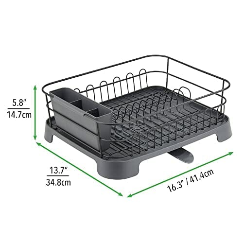 mDesign Suszarka do naczyń – Suszarka kuchenna – Ociekacz na naczynia do kuchni – Czarny mat/Popielaty: Praktyczna suszarka do naczyń dla Twojej kuchni