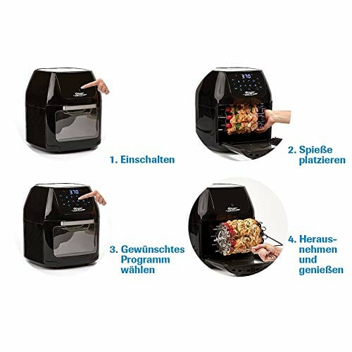 - ✔ VIELSEITIGER EINSATZ – Trockenobst dörren als Dehydrator, Drehspieß grillen als Kebab Grill, auch als Dampfgarer und Backautomat: Insgesamt ersetzt der Air Fryer bis zu 6 Geräte.