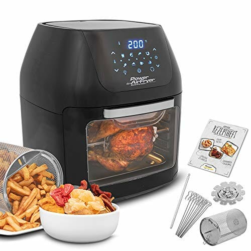 - ✔ LIEFERUMFANG & DETAILS – 1x PowerXL AirFryer Multi-Function inkl. 3x Gitter, 3x Rezeptheft, 1x Drehkorb, 1x Grillspieß, 10x Schaschlikspieße, 1x Hilfsgriff für Spieß