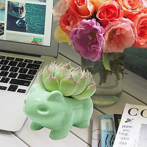 MengCat DIY Kreskówka Doniczka Śliczne ceramiczne doniczki artystyczne Dom Dekoracyjny Ceramiczny wazon Sztuczny Zwierzę Zielony