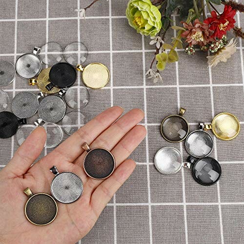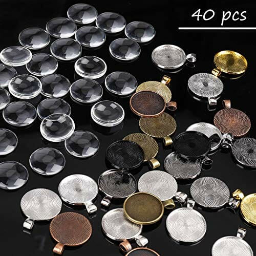 MengH-SHOP Taca na wisiorek, okrągła zawieszka, luneta ze szkła 25 mm, kaboszony do majsterkowania, majsterkowania, zdjęć, naszyjników, prezentów, produkcji biżuterii, zestaw 40 sztuk