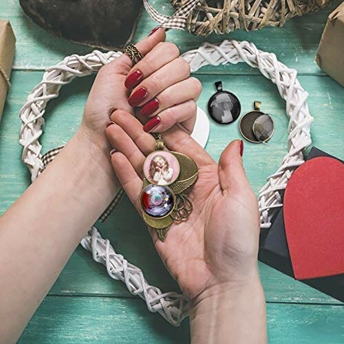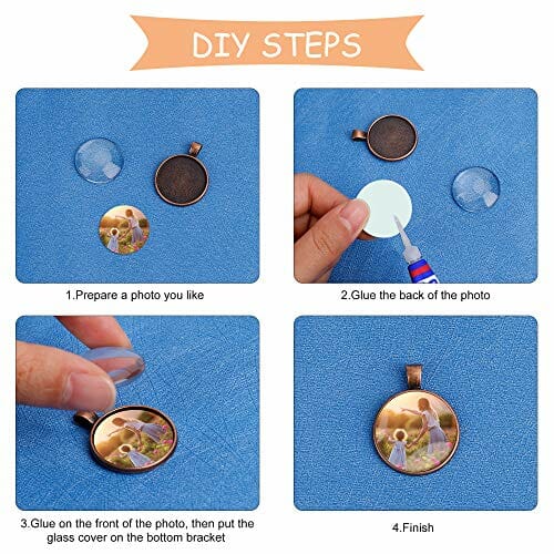 • Znakomity wisiorek: każdy wisiorek ma przezroczysty szklany kamień, który pasuje do płyty. Włóż zdjęcie, zdjęcie lub kawałek materiału do tacy i przymocuj szklaną kopułę żywicą lub klejem i pokaż swój wzór w zawieszce.