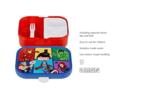 Pudełko Bento na: Pudełko Bento na lunch: Dzięki temu pudełku na lunch z motywem Avengers urozmaicenie posiłku stanie się dziecinnie proste; w pudełku z łatwością zmieszczą się 4 kanapki, ale dla większego urozmaicenia możesz użyć pudełka Bento