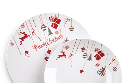 Excelsa Merry Christmas Zastawa Zestaw Obiadowy, Biały/Czerwony, 18 sz