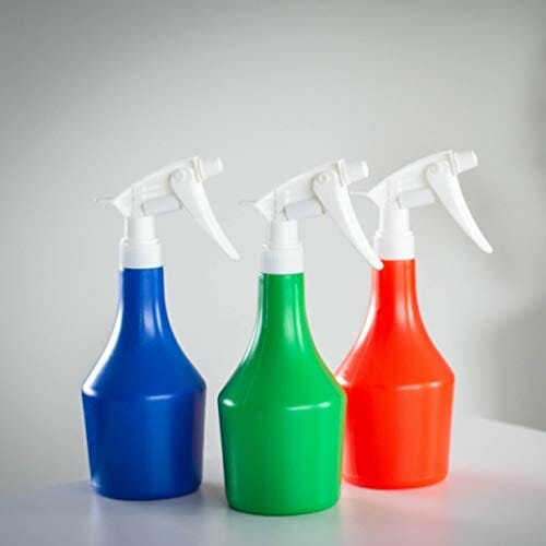 • 18 pustych butelek z rozpylaczem o pojemności 0,5 l. W 3 różnych kolorach. Wysokiej jakości dysza wytwarzająca delikatną mgiełkę. Głowica jest obrotowa. Trwałe i wytrzymałe, do użytku wewnątrz i na zewnątrz.