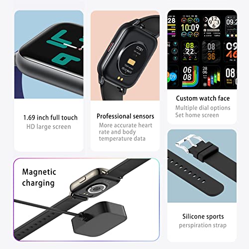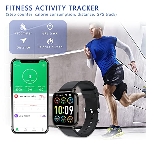 MICGIGI Męski damski smartwatch 169 cala – inteligentny zegarek z pulsometrem, monitor snu, wodoszczelność IP68, fitness tracker z krokomierzem.