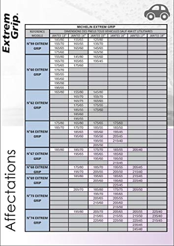 MICHELIN 007673 Extreme Grip Łańcuchy śnieżne 2 sztuki – Asymetryczne taśmy łożyskowe, 9 mm ogniwa, samoblokujące napięcie
