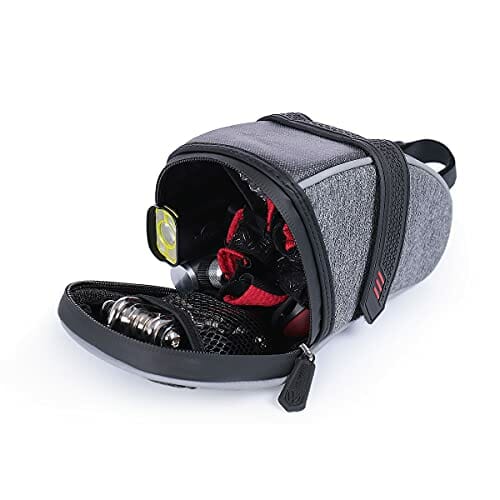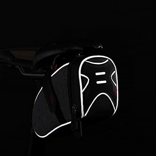 • Łatwy montaż na prawie każdym siodełku rowerowym: zapięcia na rzepy sprawiają, że instalacja jest bardzo prosta i szybka bez użycia narzędzi. Dzięki dodatkowemu zapięciu na rzep na spodzie torby można również przymocować do sztycy siodełka.