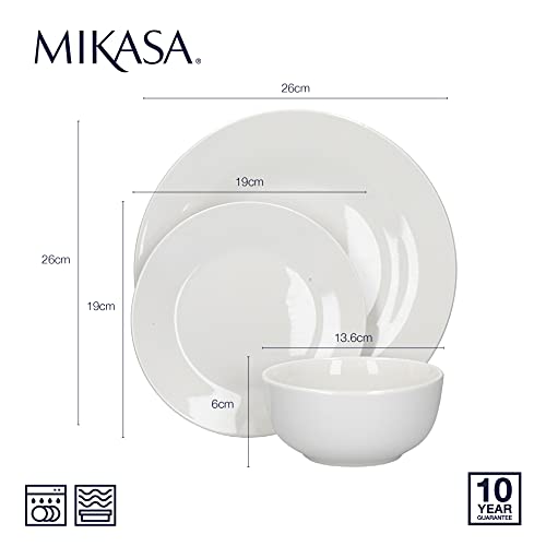 • 12-częściowy zestaw Ten wspaniały biały porcelanowy zestaw obiadowy Alexis od Mikasa ma elegancję, która przetrwa próbę czasu