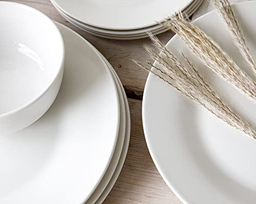 • Niezbędne elementy. Zestaw zawiera 4 talerze obiadowe (26,5 cm), 4 talerze boczne (19 cm) i 4 miski na musli (13,5 cm). Kompletną kolekcję naczyń dla małych rodzin lub przyjęcia. Każdy element można myć w zmywarce i używać w kuchence mikrofalowej