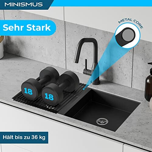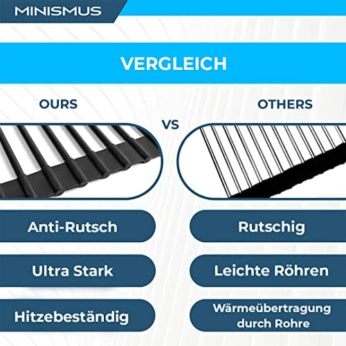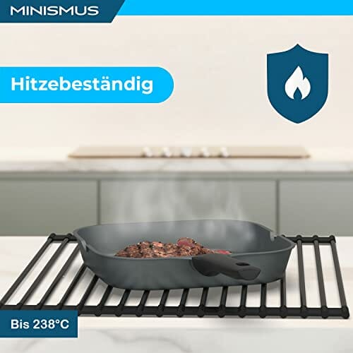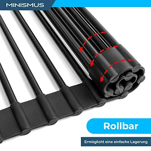 Minismus Uniwersalny stojak do suszenia naczyń – silikonowa kratka ociekowa ze stali nierdzewnej, 18 rur, zwijany ociekacz, odporny na wysokie temperatury, do mycia w zmywarce, 33 x 43 cm