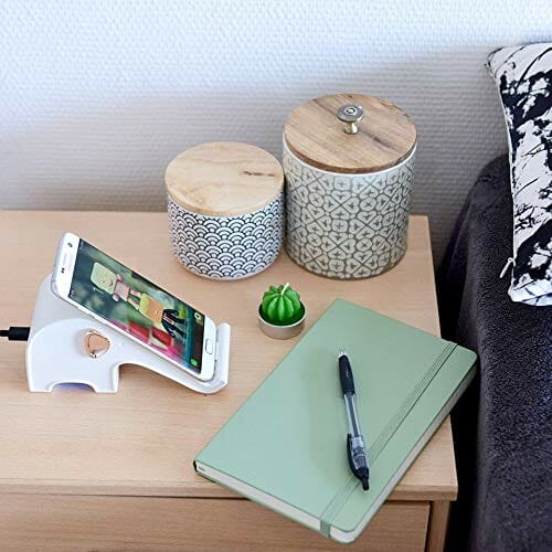 • Z lub bez: Nie trzeba wyjmować etui ochronnego lub etui ze smartfona. Ta ładowarka indukcyjna do iPhone’a, Samsung i LG ładuje telefon za pomocą większości lekkich folii ochronnych (do 3 mm grubości; nie jest kompatybilna z metalowymi osłonami i akcesoriami magnetycznymi).