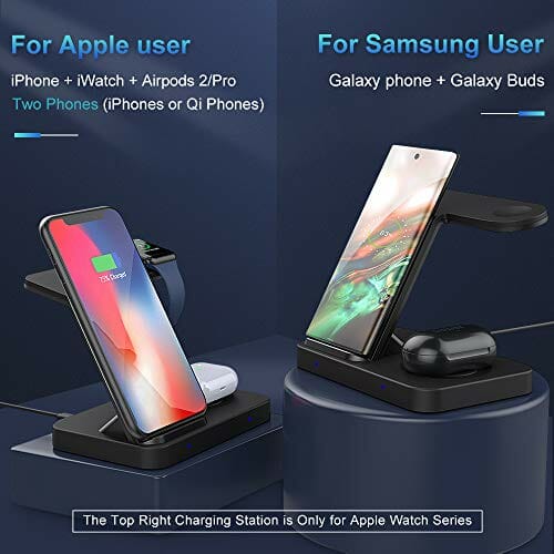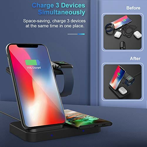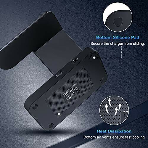 • 【Szybkie dobre potrójne lepsze】 Wbudowane cewki nadajników, stacja ładująca zapewnia moc 10 W, 7,5 W lub 5 W, zapewniając szybkie ładowanie. Może ładować 3 urządzenia jednocześnie, oszczędzając czas i oszczędzając miejsce, szczególnie dla rodzin z urządzeniami bezprzewodowymi zarówno z systemem Android. (Aby uzyskać najlepszą wydajność ładowania, użyj dołączonej ładowarki ściennej QC 3.0, gorsze ładowarki mogą nie zapewnić wystarczającej mocy i powodować problemy z bezpieczeństwem.)
