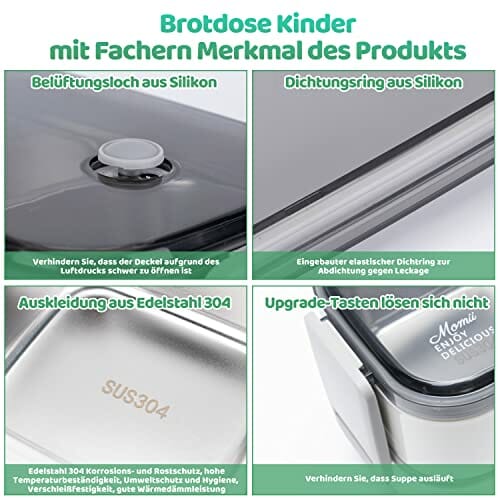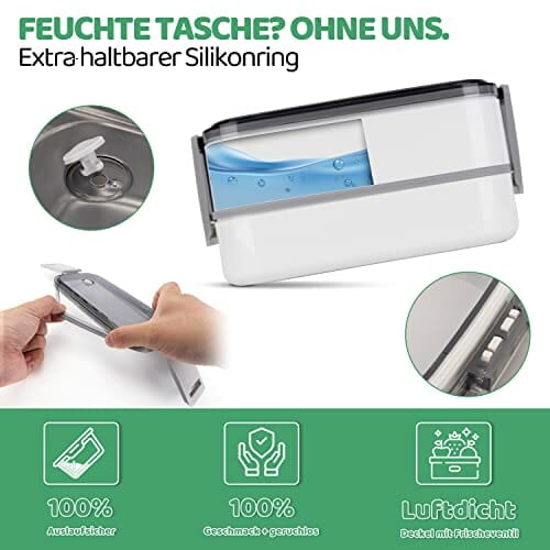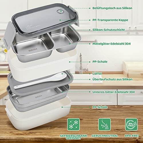 Bezpieczne materiały: wykonane: Bezpieczne materiały: wykonane z polipropylenu (PP) i tworzywa ABS i stali nierdzewnej 304. Nie zawiera BPA, nadaje się do kuchenki mikrofalowej i mycia w zmywarce (pokrywka nie nadaje się do kuchenki mikrofalowej).