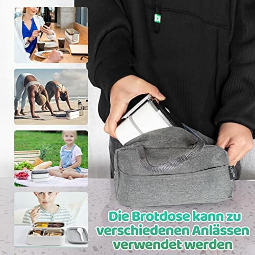 Premium pudełko na lunch dla dorosłych i dzieci, w zestawie torba do przenoszenia i sztućce, ze stali nierdzewnej, z przegródkami, pudełko na kanapki