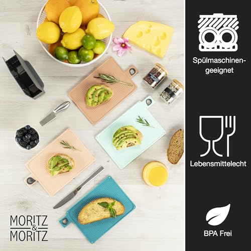 Moritz & Moritz 4 x deska śniadaniowa, nadaje się do mycia w zmywarce, 20,5 x 14,5 cm – deska do krojenia z tworzywa sztucznego, mała w praktycznym st