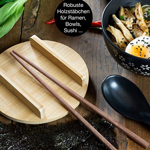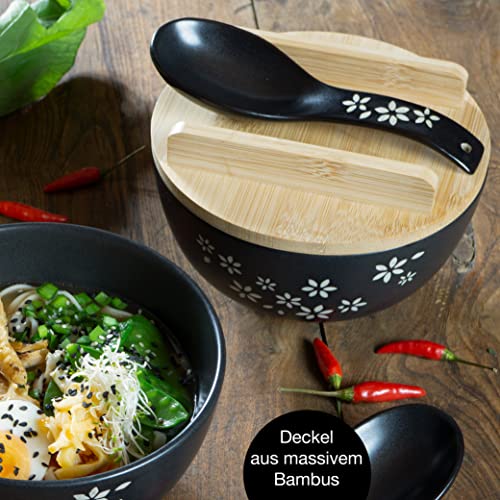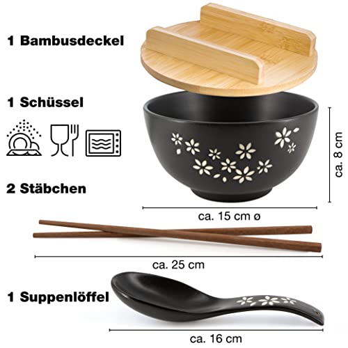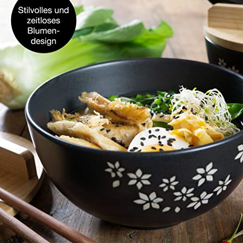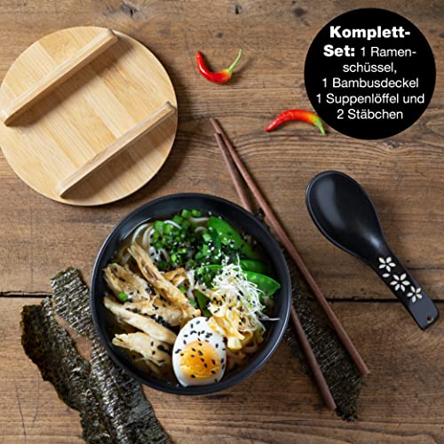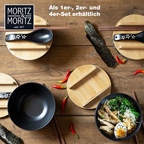 Moritz & Moritz Ramen Schüsseln Set – Schwarz, Keramik, 600ml, inkl. Löffel, Stäbchen & Deckel