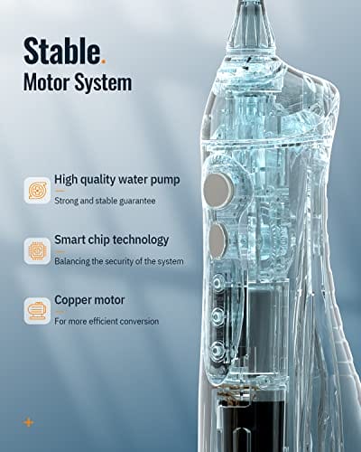【Duży zbiornik na: 【Duży zbiornik na wodę 300ml】Ten przenośny irygator dentystyczny z dużym zbiornikiem 300ml może zapewnić dla Ciebie 75s nieprzerwanego przepływu wody, wystarczającego do oczyszczenia jamy ustnej za jednym razem. Wodoodporna konstrukcja IPX7 umożliwia używanie irygatora pod prysznicem.