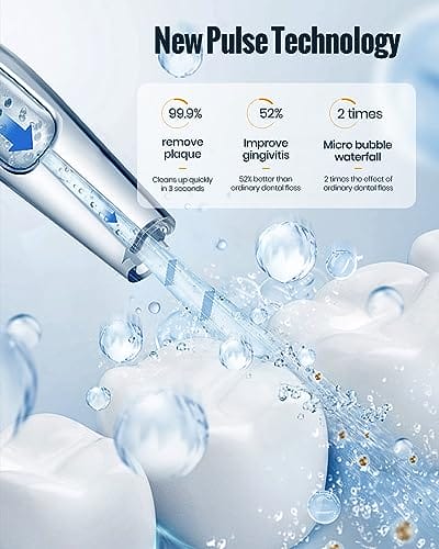 【Profesjonalny irygator do: 【Profesjonalny irygator do zębów】Z 1400-1800 impulsami wody na minutę i obrotowym dyszami o 360°, ten irygator do jamy ustnej może łatwo dotrzeć do każdego kąta jamy ustnej, aby precyzyjnie wyczyścić zęby i głęboko oczyścić każdy zakątek. Zestaw zawiera 4 końcówki, dzięki czemu cała rodzina może z n