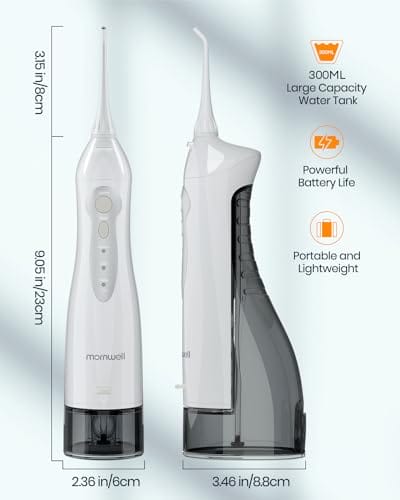 Mornwell przenośny irygator do zębów, irygator do jamy ustnej, woda, irygator dentystyczny, wodoodporność IPX7, 300 (Biały A)