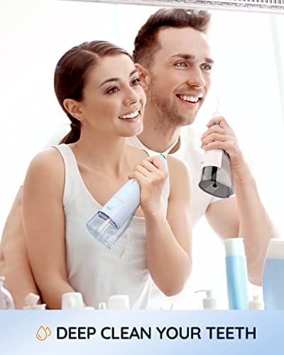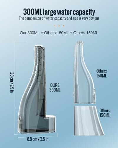 【Duży zbiornik na: 【Duży zbiornik na wodę 300ml】Ten przenośny irygator dentystyczny z dużym zbiornikiem 300ml może zapewnić dla Ciebie 75s nieprzerwanego przepływu wody, wystarczającego do oczyszczenia jamy ustnej za jednym razem. Wodoodporna konstrukcja IPX7 umożliwia używanie irygatora pod prysznicem.