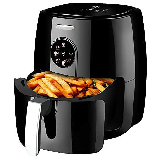 MQCHQA Heißluftfritteuse 5.5L,Heissluft Fritteusen Air Fryer Luftfritteuse Set mit Touchscreen, Timer, Temperaturregelung, Heißluftfritteuse 6 Programme 1500W für 3-5 Personen,ohne Öl